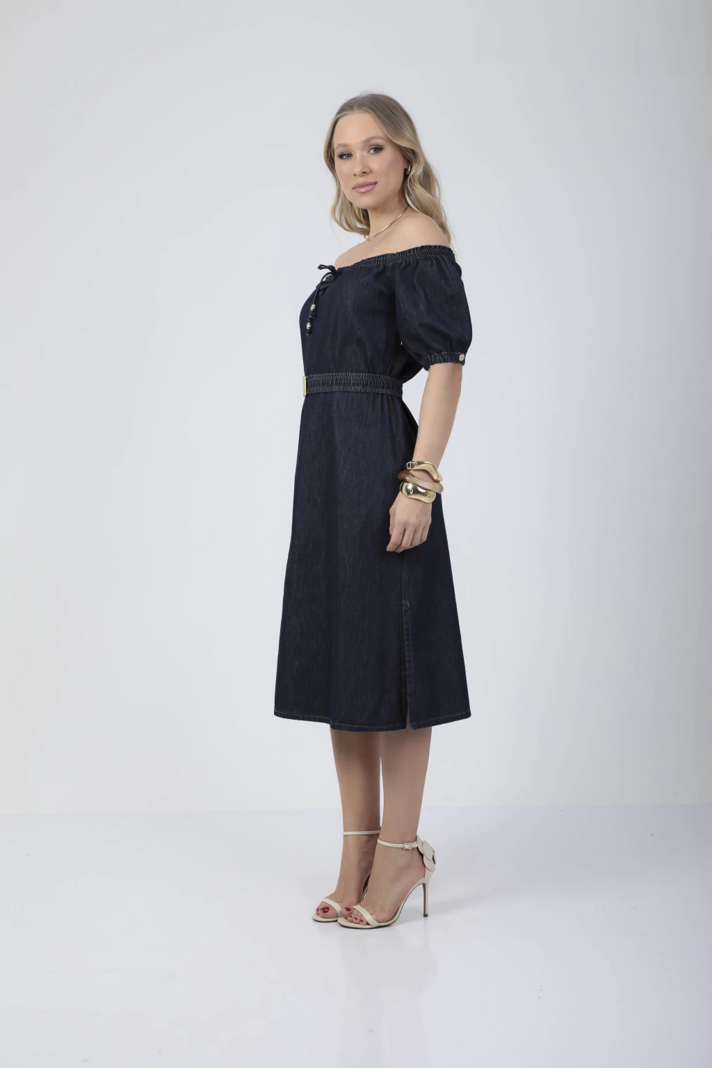 Vestido Ombro A Ombro Denim - 19017: Elegância e Conforto em Algodão Puro